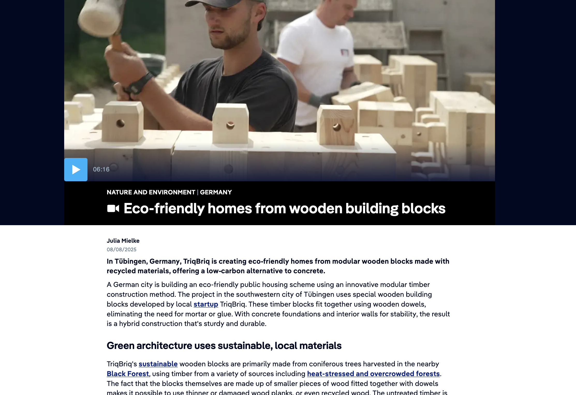 August 8, 2025 Deutsche Welle (DW.com) - Eco-friendly homes from wooden building blocks